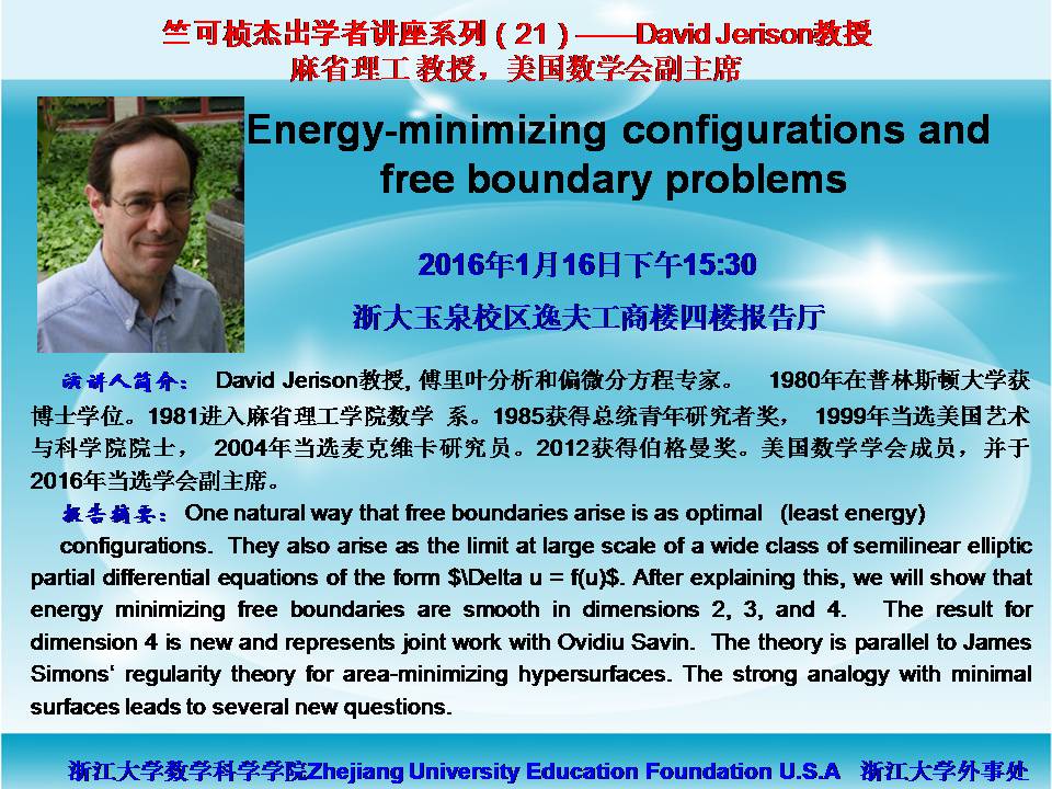 通知公告 通知公告 学术活动 2025 学术会议 新闻图片 院系新闻 院内邮件 华体会(中国) > 2017 (1月16日)竺可桢杰出学者讲座系列之David Jerison教授报告 来源:数学科学学院 发布时间:2017-01-07 1238