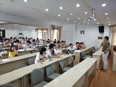 随后,数学科学学院学院苏德矿教授结合自身的从教经历,为研究生助教们讲述了“如何做好助教”这一重要课题。苏老师具体介绍了批改作业和上习题课的有关注意事项。他提出,助教也需要经常在班级中点名并生动地给在座的助教们举例,可以用“抓气球”这种具体的方法来排序号;在批改作业过程中,需要在学生第一次出错的地方划线,需要记录下好的解法和典型错误应纠正等要求;而在上习题课方面,他通过引入数学中的经典例题和定理证明来向同学们展示了如何上好每一节习题课。苏老师真诚而幽默的分享,调动了在场研究生助教的积极性,同学们纷纷热情地提问。苏德矿教授向同学们一一解答,介绍了紫金港校区教师信箱并呼吁助教们多和任课老师多多交流,共同把课程带好。会议结束前,老师和所有研究生助教建立了微信群,以便大家在遇到实际问题时可以随时询问与交流。