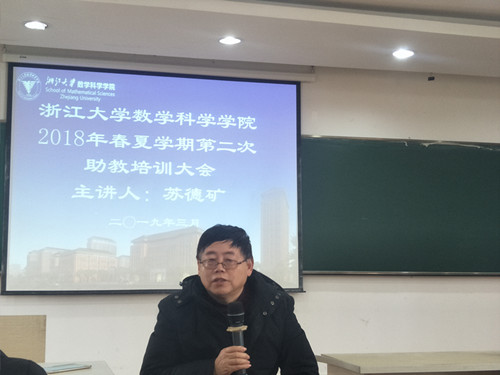 2019年3月8日下午,华体会网页版在逸夫工商楼四楼会议室召开了2018-2019学年春夏学期第二期研究生助教培训会议。本期助教培训会议主讲人为“学生最喜欢的浙江大学老师”之一、浙江大学微积分课程负责人苏德矿教授。 学院教务科熊晶蕾、付�老师以及所有2018-2019学年春夏学期研究生助教参与了本次培训会议。