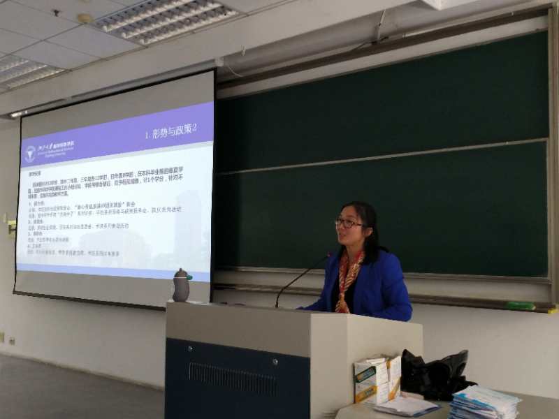 会上,陈卫老师为同学们重点介绍了学校及学院关于学生工作的重要政策,包括形势与政策2的修读方法、二三四课堂记点的申请、出国(境)交流活动、等内容,为17级广大同学丰富校园生活、促进专业学习提供了重要指导。