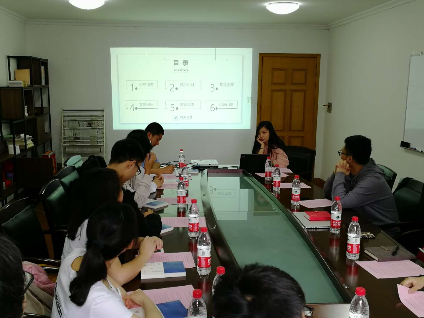 2019年4月5日上午,北京大学数学科学学院党团骨干团队来到我院进行座谈交流,双方在工商楼二楼会议室召开了座谈会,主要就党团支部、学生会建设等方面进行了交流。北京大学数学科学学院2016级本科生李擎宇、韩如冰、宋金铎、李通宇, 2017级本科生聂宇辉、周瑞琦、杨诗琪、李纯和2018级本科生赵振华、洪昕来校交流。会议由学院团委书记陈卫主持,研博会前主席谭晓宇、讲师团团长杜秋宁、团学联前主席高一帆、统计学本科生党支部书记郭相楷和兼职辅导员任泊阳参与会议。