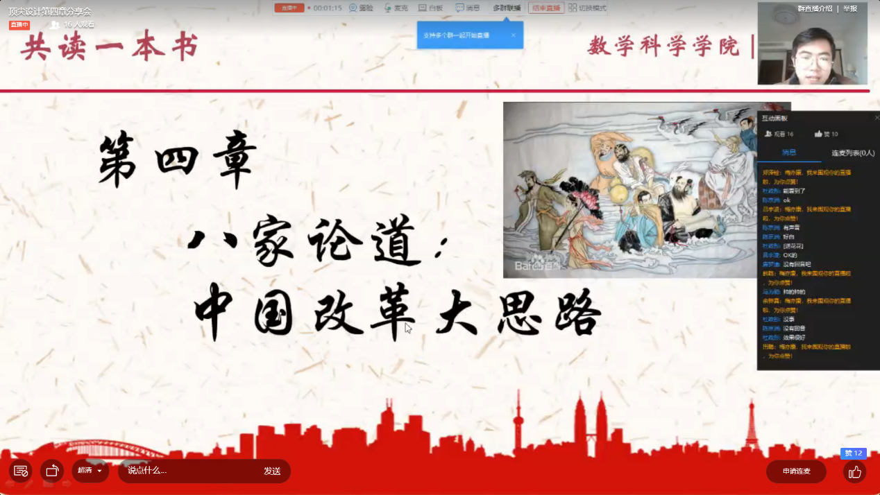 本周五3月13日下午,数学科学学院青马学院承接上周步伐,开展第二期“共读一本书”线上读书分享会,会议由陈京洲主持。