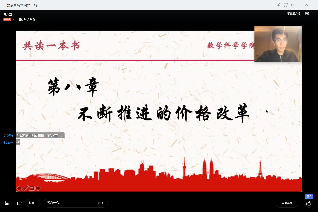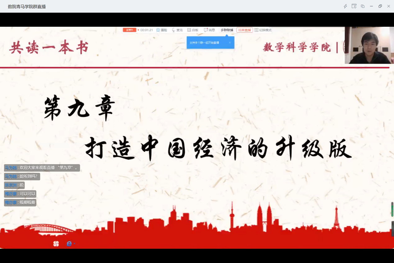 3月20日晚7时许,数学科学学院青马学院的一众学员,相约钉钉群,共读一本书。目前国内的疫情已渐渐平息,可学员们的学习热情,在本次第三期分享会中又涌向了新的高潮。