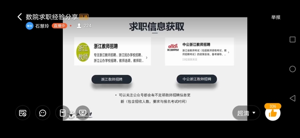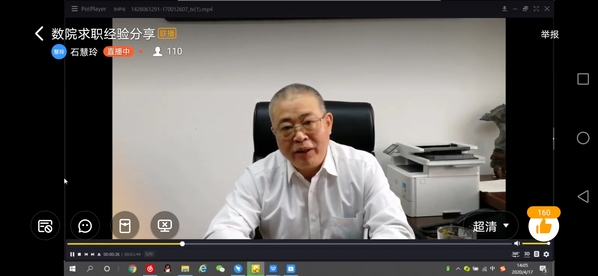 为贯彻学校党委会和就业工作会精神,2020年4月18日,数学科学学院求职生涯发展专题分享会通过钉钉直播顺利举行,会议由学院辅导员石慧玲主持,邀请了就业指导与服务中心综合办公室副主任蔡艳婷老师,以及已获得不同工作领域offer的优秀数院学子进行技能指导和经验分享。他们是:签约腾讯科技(深圳)有限公司的甘伟男、签约淘宝(中国)软件有限公司的高璇、签约杭州市余杭高级中学的熊焕焕。