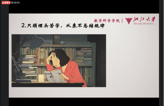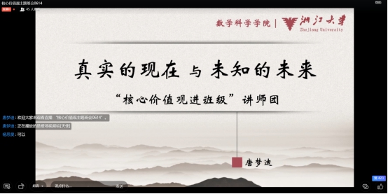 随后,唐梦迪同学带来一场题为“真实的现在与未知的未来”的宣讲。唐梦迪学姐以这半年来由“网课”带来的种种思考作为引入,结合自己当助教的经历,勉励大家要把时间和功夫花在平时,不要总是在期末懊悔平时没有好好学习,避免“二八定律”——平时效率低下,只追求期末的速成。每一个真实的现在,都在成就未知的未来,只有当下,才是可以牢牢把握的。