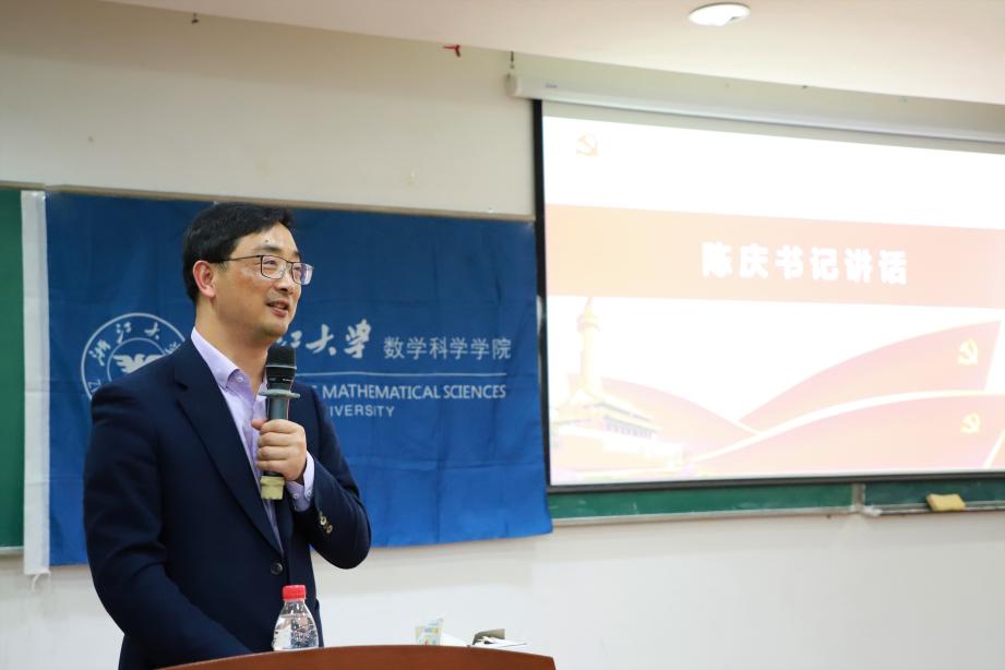 陈庆代表学院对两位德高望重的老师前来参加和支持学院党史学习教育活动表示感谢。他讲到,当前全校广大师生正掀起党史学习教育的热潮,数学科学学院也在有序推进党史学习教育活动,聆听前辈讲述党史故事和华罗庚等科学家献身国家建设事业的先进事迹,是学院党史学习教育精心安排的活动之一。陈庆也向同学们简要讲述了中共一大代表王尽美的革命事迹,介绍了王明华教授教学科研的成就和关心教育青年学生的拳拳之心。希望同学们抓住难得的学习机会,用心聆听、用情体悟。