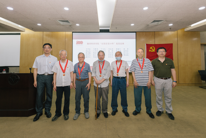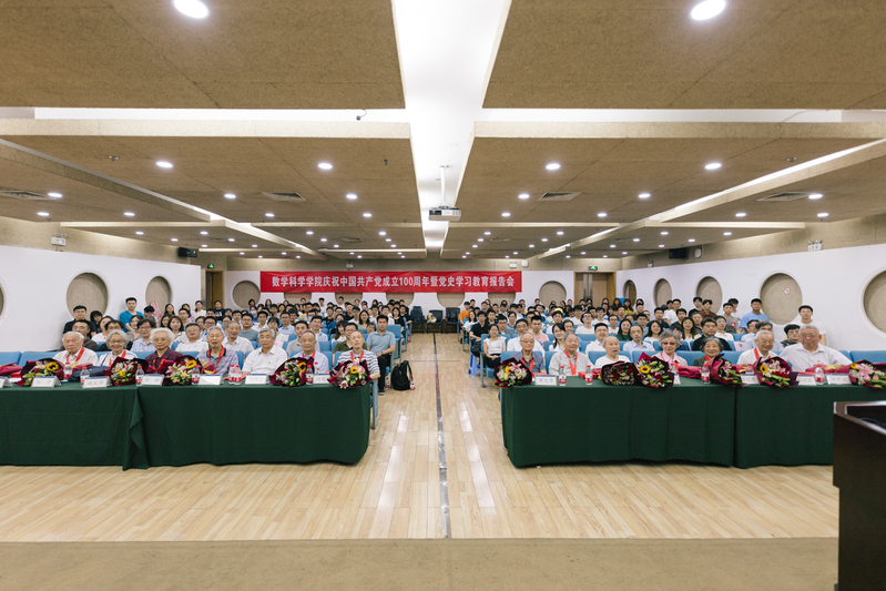 奋斗百年路,启航新征程。6月25日下午,数学科学学院庆祝中国共产党成立100周年暨党史学习教育报告会在玉泉校区顺利召开。会议为学院老党员隆重颁发“光荣在党50年”纪念章,表彰学院表现突出的先进基层党组织、优秀共产党员及党务工作者。激励师生党员坚定初心、勇开新局,以更加昂扬的姿态,继续发挥党员的先锋模范作用,胸怀国之大者,将个人融入国家和社会建设发展,积极推进学校、学院“十四五”规划落实和“双一流”建设,以优异成绩向建党百年献礼。学院班子成员、党委委员,老党员代表及师生党员近200人共同参会。会议由学院党委副书记、纪委书记孙凯主持。