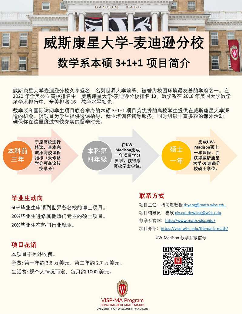【对外交流| 宣讲会】美国威斯康星大学麦迪逊分校数学系3+2及硕士2022秋季项目线上宣讲会