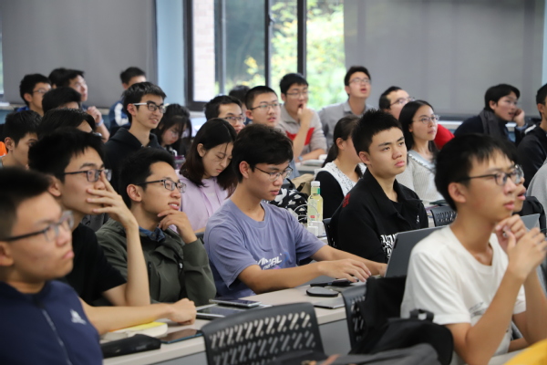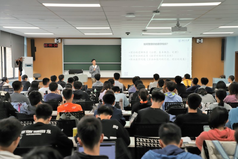 王枫老师从自己学习与研究数学的经验出发,同时结合参与国际性数学竞赛的心得体会,从“理论的逻辑体系”、“数学知识的应用”和“解决数学问题”三个方面高度概括了数学知识整理的方法体系,并通过具有典型代表性的实际案例讲解,深入浅出地回答了“如何巧妙运用数学思维和数学知识破解难题”,收获现场同学们掌声不断。