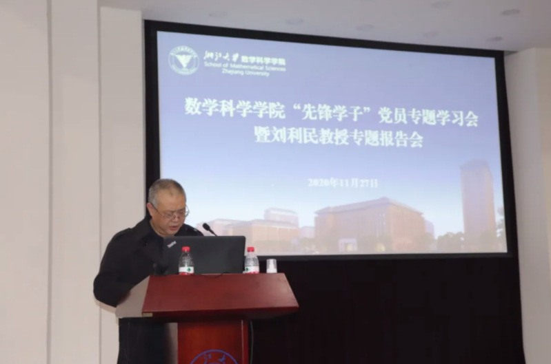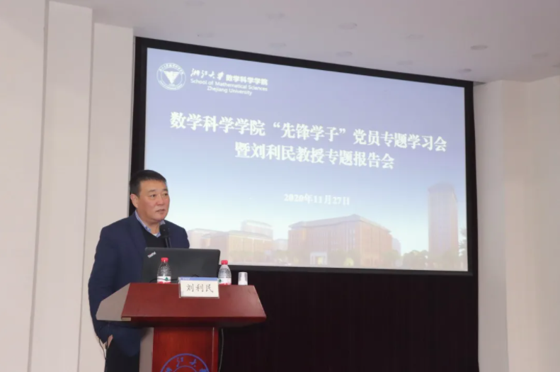 为进一步引导广大党员坚定理想信念,守初心担使命,认真贯彻践行社会主义核心价值观,深入学习贯彻党的十九届五中全会精神,学习抗疫先锋典型事迹,数学科学学院于2020年11月27日下午在玉泉校区邵科馆117举办党员“先锋学子”全员培训暨刘利民书记专题培训会,邀请邵逸夫医院党委书记刘利民带来《爱与责任铸就伟大胜利》专题报告,分享援鄂经历。学院党委书记闻继威老师出席并主持本次报告会,党委副书记孙凯老师、学院全体党员共同参与本次报告会。