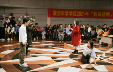 《公主与抽代书的故事》以幽默风趣的故事背景和人物台词,展现了当下数院学子充实而有意义的学习生活,全场笑料不断。《抽象代数》作为难度较高的代表课程之一,在节目中被设定为解救公主必须攻克的难关,生动地还原了新时代数学人青春激昂、积极向上的精神风貌与不畏艰难、乐于挑战的精神本色。