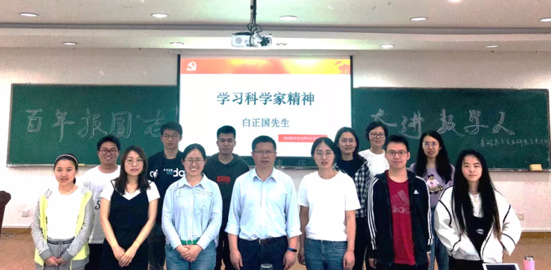 在学院“一基层支部·一科学家·一初心故事”党史学习教育活动中,基础数学专业研究生党支部结合原数学系主任、党总支委员,曾当选三届浙江省政协委员的白正国先生精神进行专题学习。数学科学学院副院长、党委委员盛为民与支部党员共同参与学习活动。专题学习中,盛为民教授与支部书记张笑然分别结合个人经历及前期学习情况讲述了专题微党课,全景式地展示了白正国先生潜心微分几何,耕耘桃李芬芳的数学人生。从白先生求学科研育人的科学人生中我们可以深刻感受到:第一,科研要踏实、求是、前沿,即使在防空洞中都能踏踏实实搞科研,而科研重心则要剑指国际前沿,瞄准世界一流,同时密切配合国家发展需要;第二,发展学术梯队对于学科的发展传承十分重要,在追求自身发展的同时还应该发挥党员的先锋模范作用去影响带领身边的人进步,将学科建设为顶尖人才汇聚的一流平台。