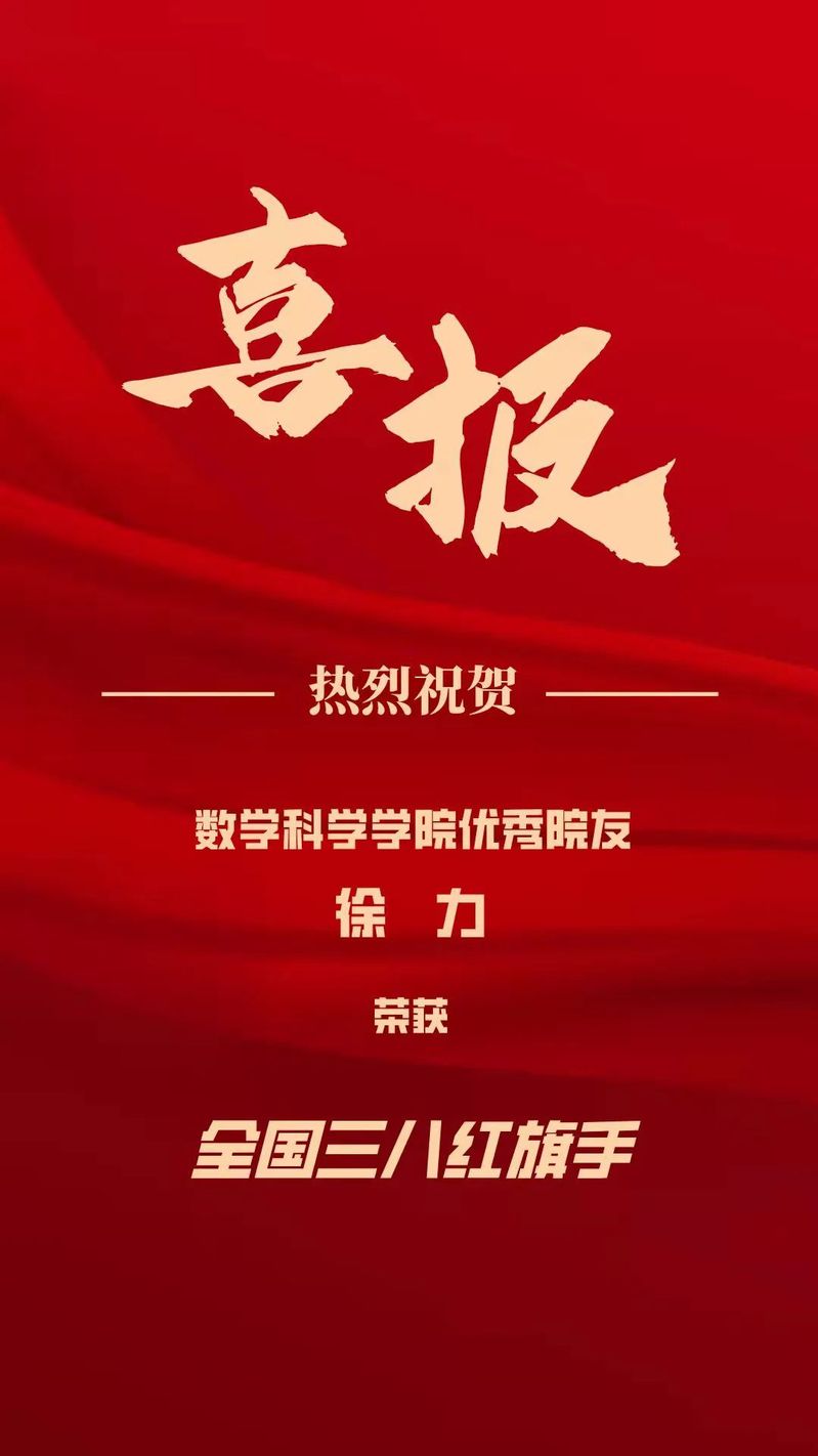 热烈祝贺数学科学学院院友徐力获评全国三八红旗手!