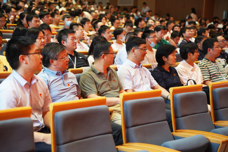 随后,学院教师共同参与专题党课学习。之江实验室党委书记、主任,浙江大学党委副书记朱世强在题为《以历史悟伟力 化使命为动力 为实现高水平科技自立自强持续奋斗》的专题党课报告中,由习总书记在国家版本馆面对数学专著《九章算术》的讲话引入,回顾了我国科技发展演进历程,深刻总结了我国取得重大科技成就背后的规律性认识,分析了当前科技发展新趋势和面临的新挑战,指出在新时代、新征程中,一流科研机构和高校要以更强的责任意识,在推进高水平科技自立自强中展现新作为、新担当。希望全体科技工作者牢记科研使命,笃定信念信仰;坚持自信自立,加快抢占科技制高点;紧抓时代机遇,主动适应科研范式变化;加强拔尖创新人才培养,提升原始创新能力和人才培养质量;厚植文化内涵,熔铸科学精神底色。要求全体党员聚焦主业加强学习,紧跟党的创新理论步伐;树立争先有我意识,在服务浙江、为国担当中展现作为;脚踏实地、仰望星空,做科研事业上的追梦人;发扬践行实干精神,推动新一轮高质量发展。号召大家不断学习、理解、掌握新思想,坚定扛起打造国家战略科技力量、建设世界科技强国的历史重任,艰苦奋斗、负重前行、勇攀高峰,为实现中华民族伟大复兴的中国梦贡献力量。