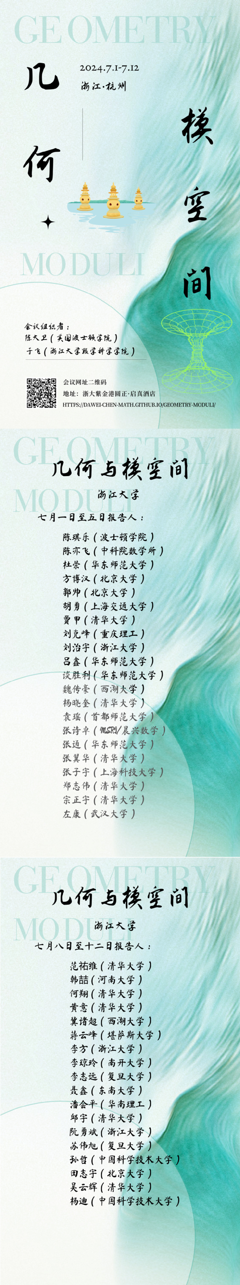 学术科研 学术团队 学术活动 学术会议 讨论班 School Colloquium 信息公告 文件汇编 华体会(中国) > 学术会议 几何与模空间会议 来源:数学科学学院 发布时间:2024-06-25 348 https://dawei-chen-math.github.io/Geometry-Moduli/