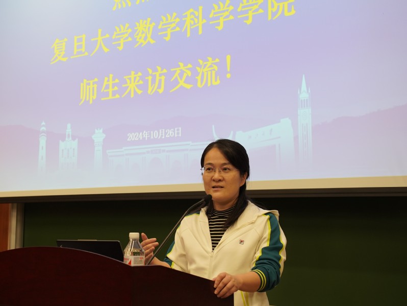 学院党委副书记孙凯致欢迎辞,欢迎复旦大学数学科学学院师生的到访,她回顾了两校历年来在拔尖创新人才培养工作中取得的积极成果,也希望两院今后能够以科学家精神、教育家精神为核心,在人才培养和思想教育工作中进一步加强交流合作。
